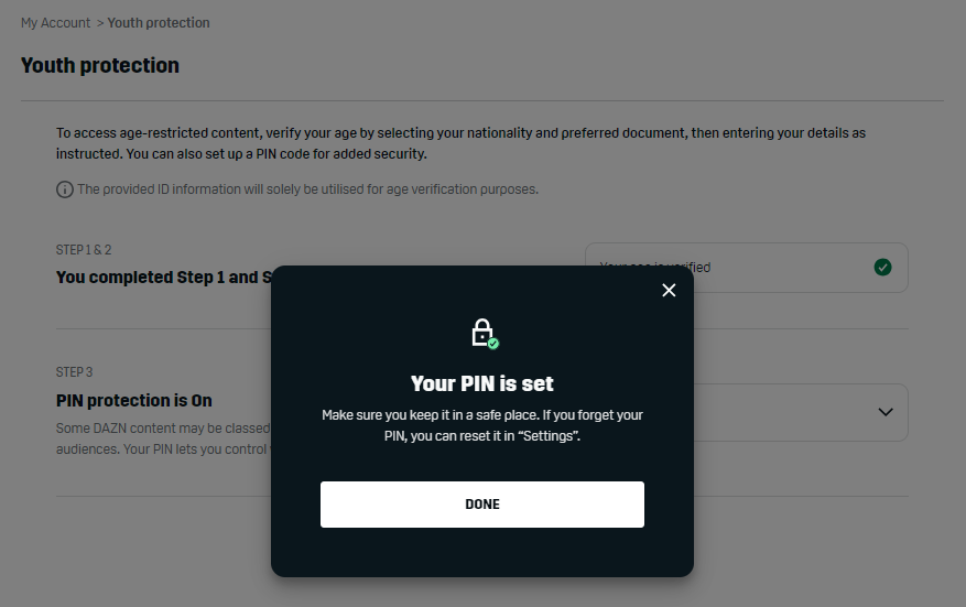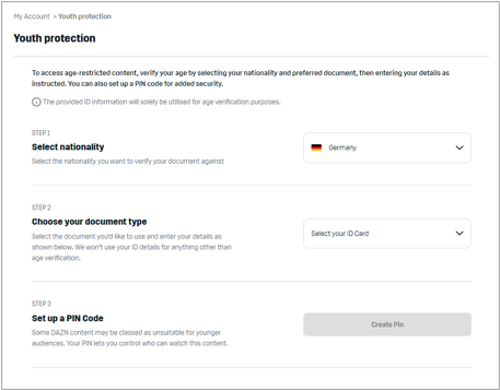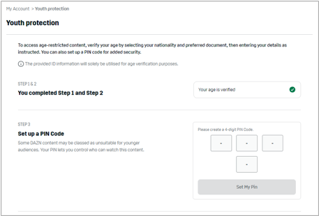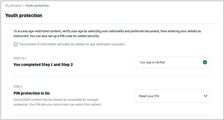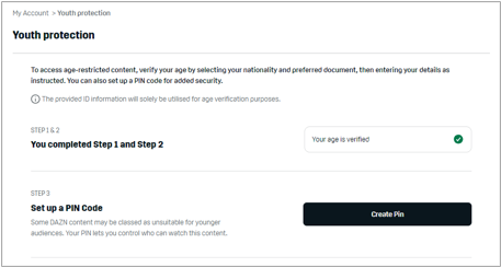 Verifying your age is a simple 3-step process which shouldn’t take longer than 5 minutes. All you need is access to the DAZN website on your computer and your ID or Passport.